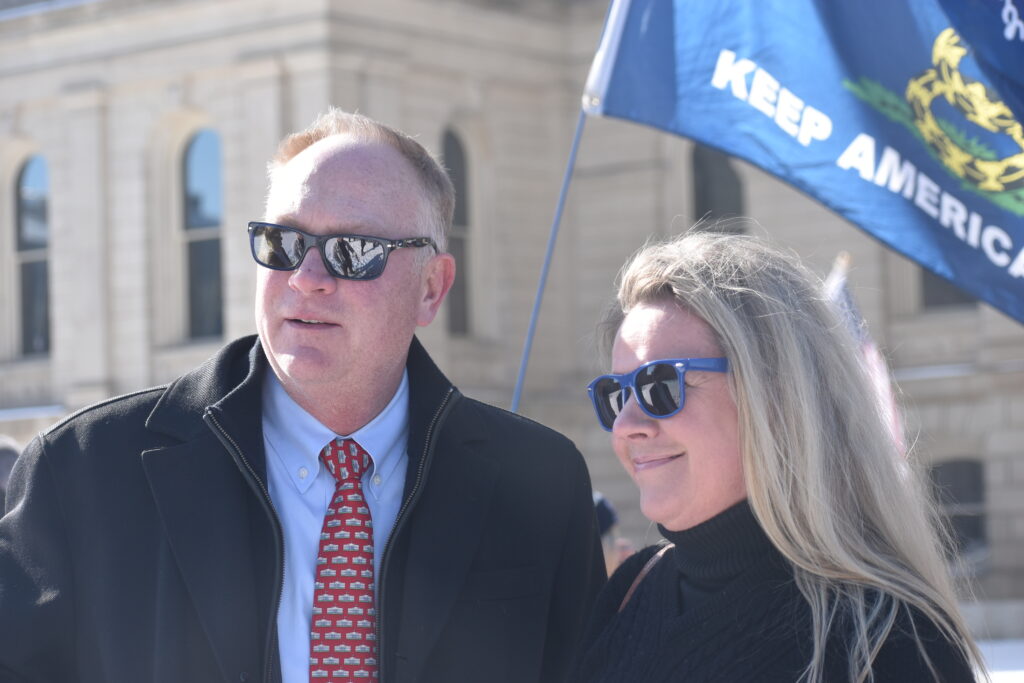 HD-51: Trump-endorsed incumbent state Rep. Matt Maddock (R-Milford) and his wife, Michigan GOP Co-Chair Meshawn Maddock, were involved in the Jan. 6, 2021, rally outside the U.S. Capitol. Both gave speeches to a crowd the day before and Meshawn Maddock organized buses to transport Michiganders to Washington, D.C. Two months earlier, Matt Maddock also warned: “As soon as we lose our faith in elections…the next step was the Civil War.”