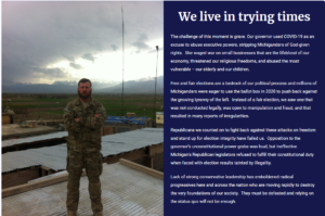 GOP state Senate candidate Jonathan Lindsey’s campaign website rhetoric on the 2020 election | Screenshot